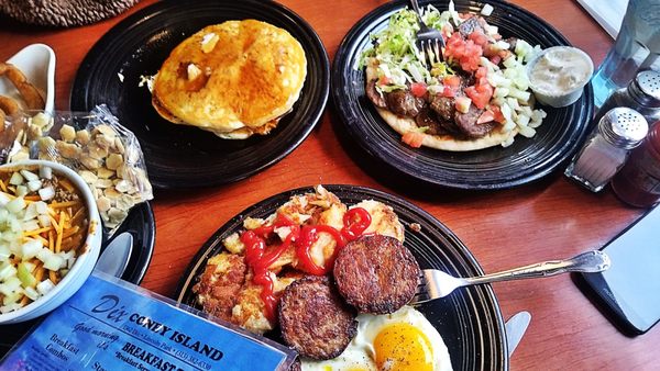 The menu showcases a range of traditional American dishes, including breakfast options like omelets and hash browns, along with other diner favorites. While customer feedback varies, many patrons appreciate the hearty portions and value for money. The restaurant provides takeout services for those looking to enjoy their meals at home.